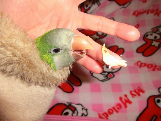 週5日仕事に行ってしまうので、インコ達だけで留守番の日も多々あるせいか、昼間の留守番には慣れていて、固まって何もしない、とかは無いですが、あんこの場合、午後からいつも放鳥している時間に出掛けて、夕方帰ると、『待ってました!』とばかりに、ご飯を食べ始める…って言うのは、何度か経験しています。