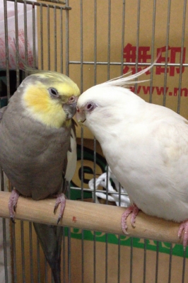 オカメインコの雄雌一羽ずつを里親としてお迎えしました。