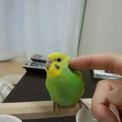 みどりちゃんは、指にとまるより手のひらに乗ることのほうが多くて、そこで片足あげて掻いたりしてるとたまによろける姿が可愛いよ〜!