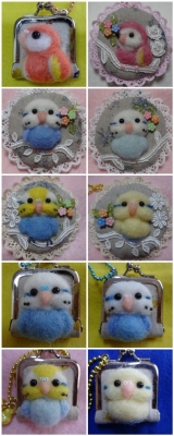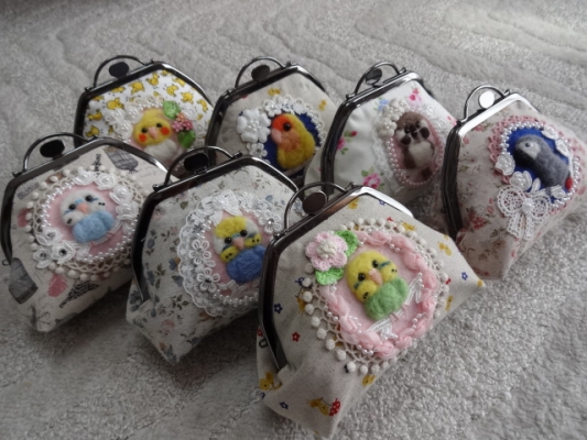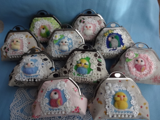 大人気! 愛鳥コレクション 羊毛刺しゅうがま口ポーチ&チャーム