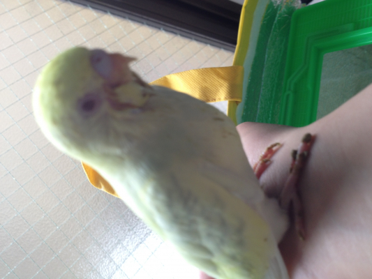 我が家にも6ヶ月のメスのクリームがいます。目は黒近いブドウ目です。生後2か月の幼鳥で飼い始めましたが、その頃は全身綺麗なオフホワイトでした。