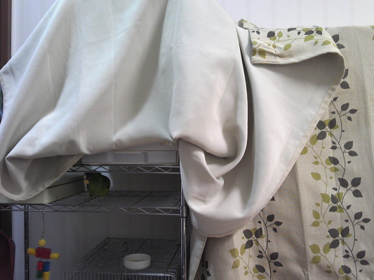 ケージ覆い用のカーテン、そう言われてよく見れば、ほんと似てますね!