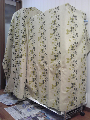 考えてみれば、カーテン地って、厚みがあるし丈夫だし、ものによっては遮光性や断熱性・遮音性まであるし、優れものですね。