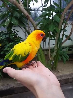 ちっちさんも書かれていますが、あの、鮮やかなオレンジの毛糸玉のような愛らしいコガネメキシコインコちゃん♡