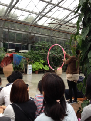 残念だったのが、あいにくの雨で、屋外のバードショーが見れなかったこと。