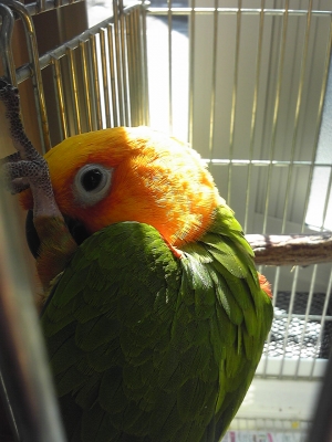 同じく独り身のキャップ(コボウシインコ・7歳の雄)は、
