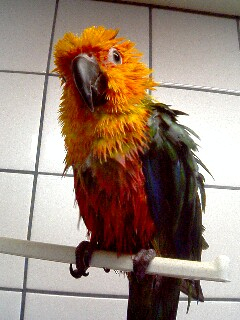 お顔も、水浴びが進むにつれ、どんどん鮮やかな色になり、綺麗ですね。
