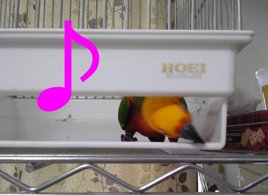 ふと、隣のグーちゃんのケージを見たら、