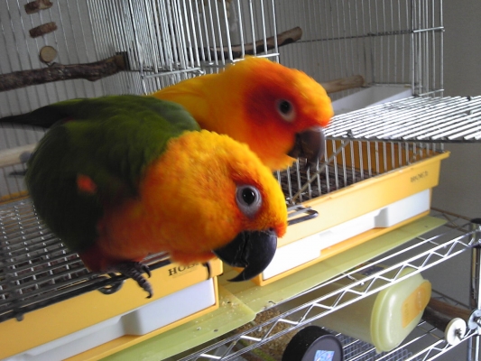 まだ放鳥タイムでなかったので、鳥たちは皆ケージ内にいました。