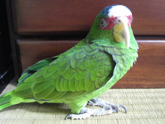 同じく独り身のキャップ(コボウシインコ・7歳の雄)は、