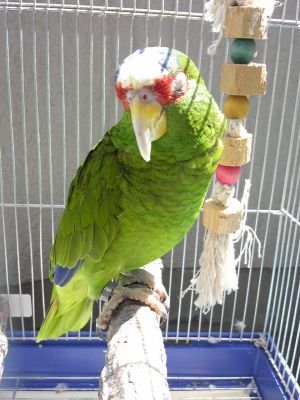同じく独り身のキャップ(コボウシインコ・7歳の雄)は、