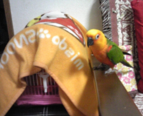 同じく独り身のキャップ(コボウシインコ・7歳の雄)は、