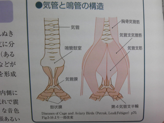 で、その周辺(鳴管を形作っている組織)に白い影が映っていました。