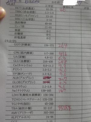 血液検査の結果