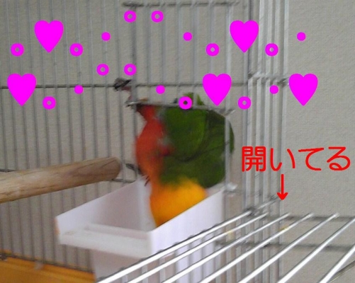 うちのはエサ入れの扉をくちばしで上下にするだけで、脱走未遂ですがうるさくって、しかもカバーを取るまで止めません