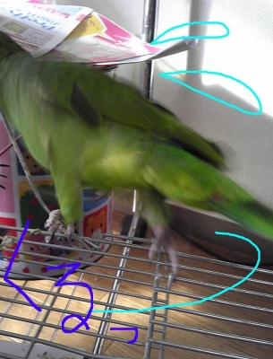 バルたんの籠入れ方法、うちでも開始しました。うちに来た頃はやはり部屋を暗くしてタオルで包んで捕まえ籠に入れてましたが、次にとった方法はYouTubeで他の鳥さんの声を聞かせて寄って来たところを籠に入れるでした。最近はバナナやリンゴをまず私が食べているところを見せ、寄ってきたところでスタンドに止まらせ、顔の前にお目当ての果物を見せながら籠の入口まで連れていき、中へ入ったところで籠の中でその果物を数口食べさせるっていう方法をとってます。でも、この方法はいつも果物を用意しておかなくてはならないのと、どんなにお腹一杯でも、サンゴを籠に入れる為に食べなくてはならないってところですかね(++)