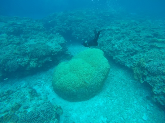 瀬底島〜水納島は、所々サンゴの白化や死が見られますが、