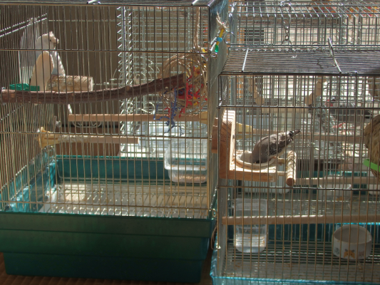 爪切りの時に捕まえて保定役をしたり、あと、放鳥時に鳥たちを順番にケージに戻す役をしてたら、「すっかり私が来ると嫌な目に会う」と思いこんでしまったみたいで。