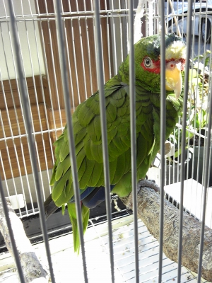 同じく独り身のキャップ(コボウシインコ・7歳の雄)は、