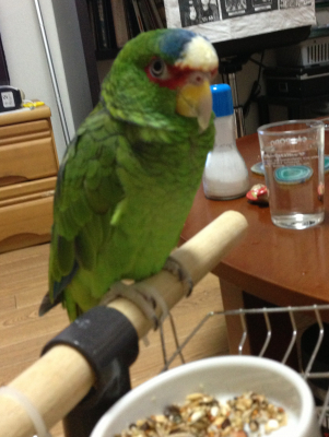 同じく独り身のキャップ(コボウシインコ・7歳の雄)は、