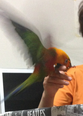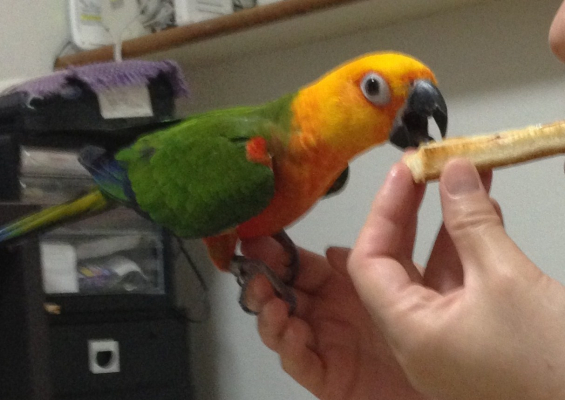 前回、こんぱ○横浜店の3歳の手乗り訓練中のナナイロ君