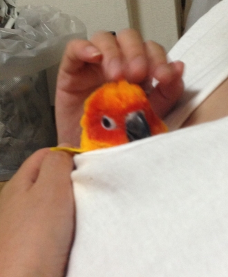 ちっちさん、今日サンゴを放鳥していた時、座って漫画を見ていた私の足にサンゴが止まろうかどうしようかと迷っていました。結局勇気が出ずに壁に飛んでいきましたが。でも良い傾向ですよね?バルたんも最初にちっちさんに止まる前は何度か躊躇した事ありますか?