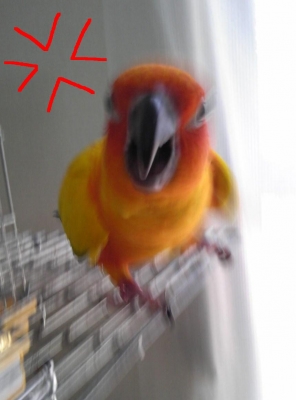 昨日の放鳥タイムの数時間だけで、6回も飛びかかりました。