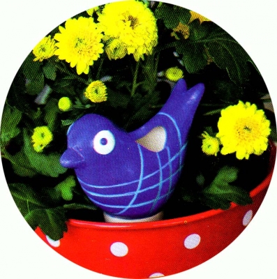 胴体部分に水を入れ、植木に挿すと、水が滲みでて