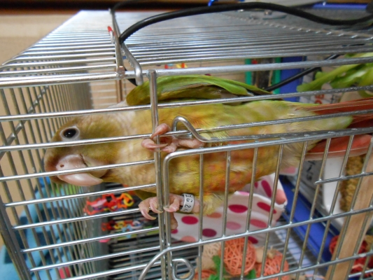 でもクーちゃん(アオシンジュウ)がいつもルナ(コザクラ)のケージの上に乗るので要注意です何度危ないよって言っても、効果なしです(´・_・`)