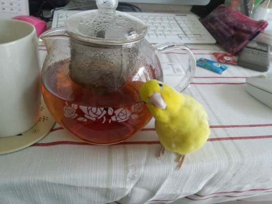 らいむさん、ベストポジションでいいポーズです♪ティーポットと一緒になるととても小さいですね。