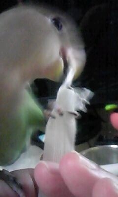 いつも餌箱の餌を替える時にビニール袋に入れて捨てるのですが、家のサザナミインコはそれをかじるのが大好きです。