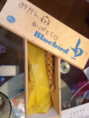 帰ってから、ミカンを綺麗に拭いて、綺麗な紙に置き、綺麗な箱に入れました。