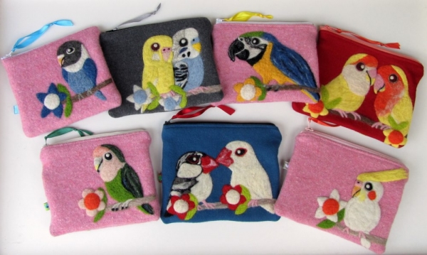 愛鳥コレクション 羊毛刺しゅうポーチが入荷しました〜
