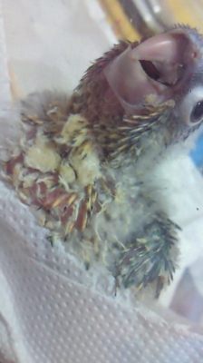羽に付いたパウダーフードの量と塊具合がご覧の様にかなり