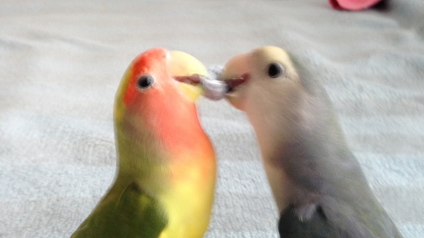 slowさんのコザクラちゃん(ごめんなさい、お名前はぴいちゃんとちゃこちゃんでしたでしょうか?)、人懐っこくて可愛いコザちゃんですね(*▽)