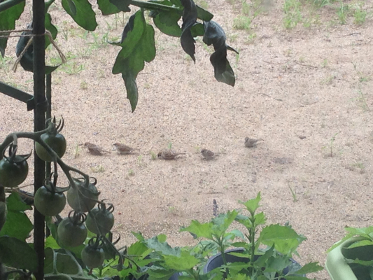 うちはスズメ一家が仲間を呼んでくるらしく、お昼になるとリーダー的なスズメが号令をかけます。すると、23羽ほどのスズメたちがどこからともなく集合し一斉に砂浴びを始めるんです!笑