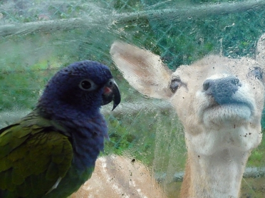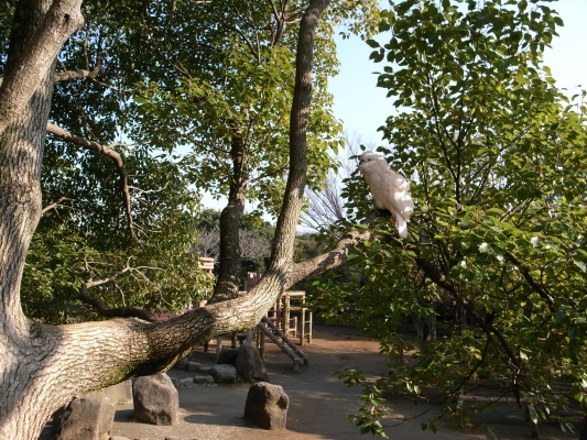 富士花鳥園にも、ケージの中に、プーさんのぬいぐるみと一緒のオウムさんが居ますね。無表情で・・・ちょっと寂しそうでしたが。
