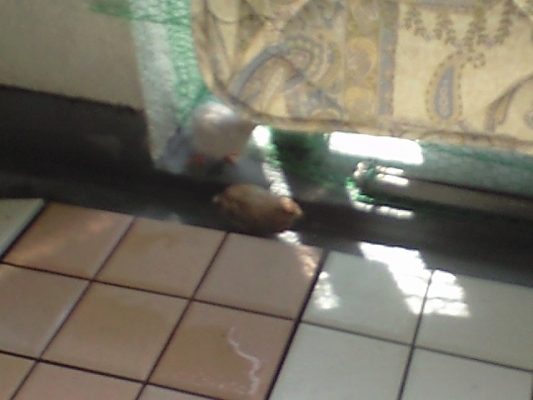 それに、ラブバードの散歩というか、愛鳥家が近所に居たので、「会いたい」とご挨拶に行ったら、奥様が出てきたときに肩に乗っていましたよ♪