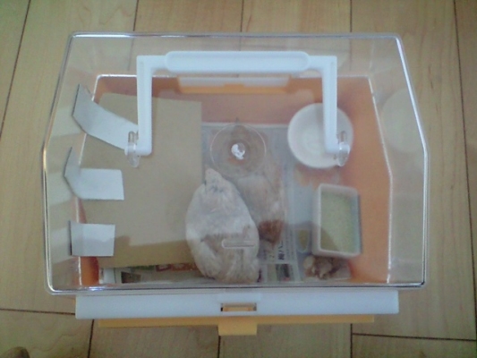 PiPiさんは、例の大きなアクリルキャリーを持ってるんですね