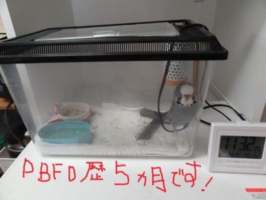 為に先住の、セキセイ♂やオカメ♀と接触してましたが、尾羽が短いままなのを不審に思い病院で検査した結果PBFD陽性なのが判明しました。