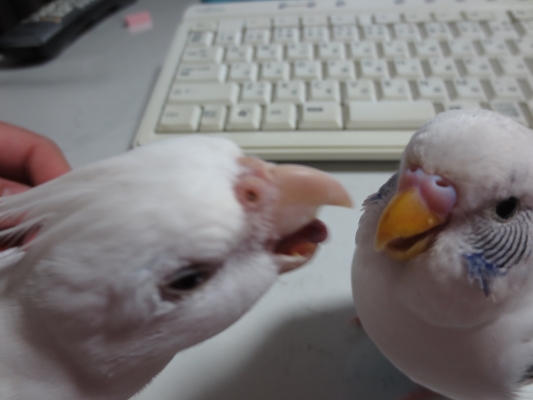 オカメは頭が良いと思うので、セキセイのトワは無害なのよって認識してくれたらもっと仲良くなれるかなぁ〜なんてw