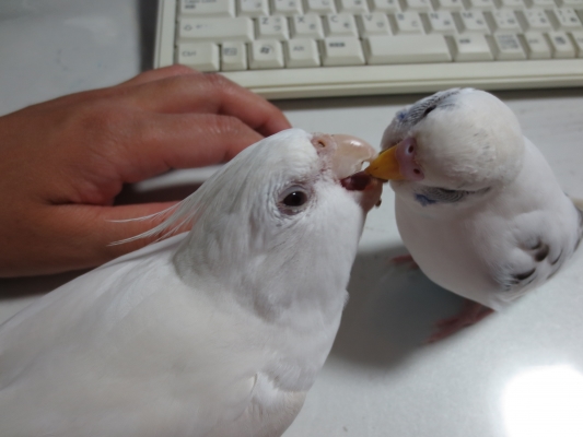 トワがしつこいからチロ・・・他のセキセイにも敬遠がちですが〜トワは、私を好きらしく私が傍でサポートするとチロにも悪戯はしないようです。