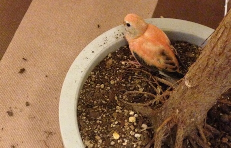 7/13(土) AM9:30〜10:30に今治市別名の自宅で放鳥中に、生後約4ヶ月のアキクサインコを逃がしてしまいました。