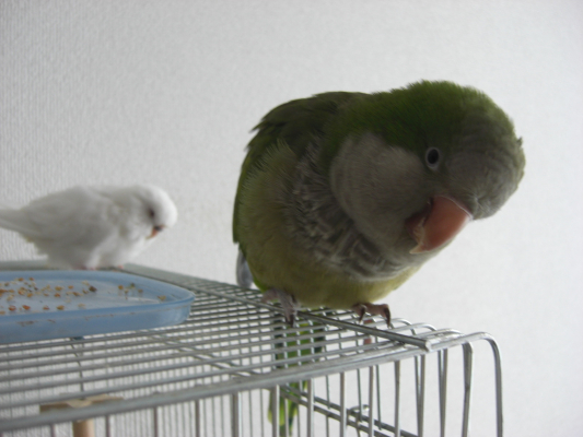 セキセイとオカメを追い回していじめるので、放鳥はなるべく一緒にしていません。