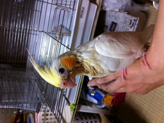 そんな中 母が気付いたのですが、オカメインコ自体も気になるらしく嘴で固まった毛をほぐしていたとか・・・。