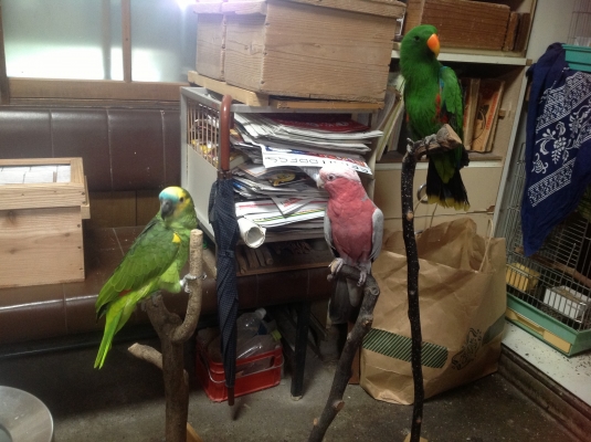 ぐるぐるさん、私はね放鳥はしません、70羽もいるインコやオウムを放鳥すると大変な事になります(笑)それでも、鳥の居る倉庫のドアを開けると時々脱走しているのもおりますが(-_-;
