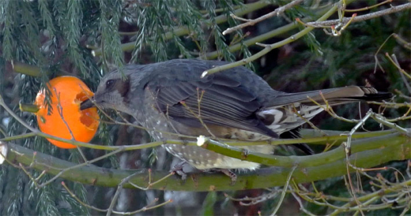 冬に行った時に窓辺に木が有るのでそこへミカンを半分にして刺して見ました。すると直ぐにヒヨがやって来ました。そして私が滞在してる半日くらいの間にメジロが早速やって来て寮生達がビックリしていました。ま、私の動物博学ぶり?は彼らにも有名なので少々納得。