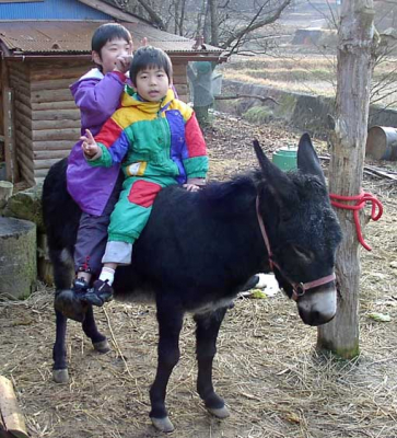 ロバ君に子供さんが乗っていますね♪布施の寮に住んでいた方でしょうか?