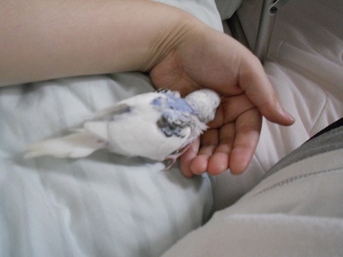 今くらいから頭周りや羽などを触らせ慣れておくと後々スキンシップし易くなると思います☆