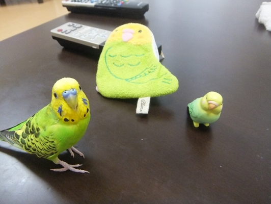 かろうじて頬の青い部分でわかりますが、パッと見、まん丸すぎてインコなのかどうかわかりませんね!(笑)